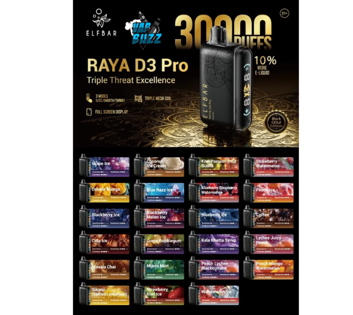 Elfbar Raya d3 pro 30000 puffs 50mg nicotine triple mode disposable
